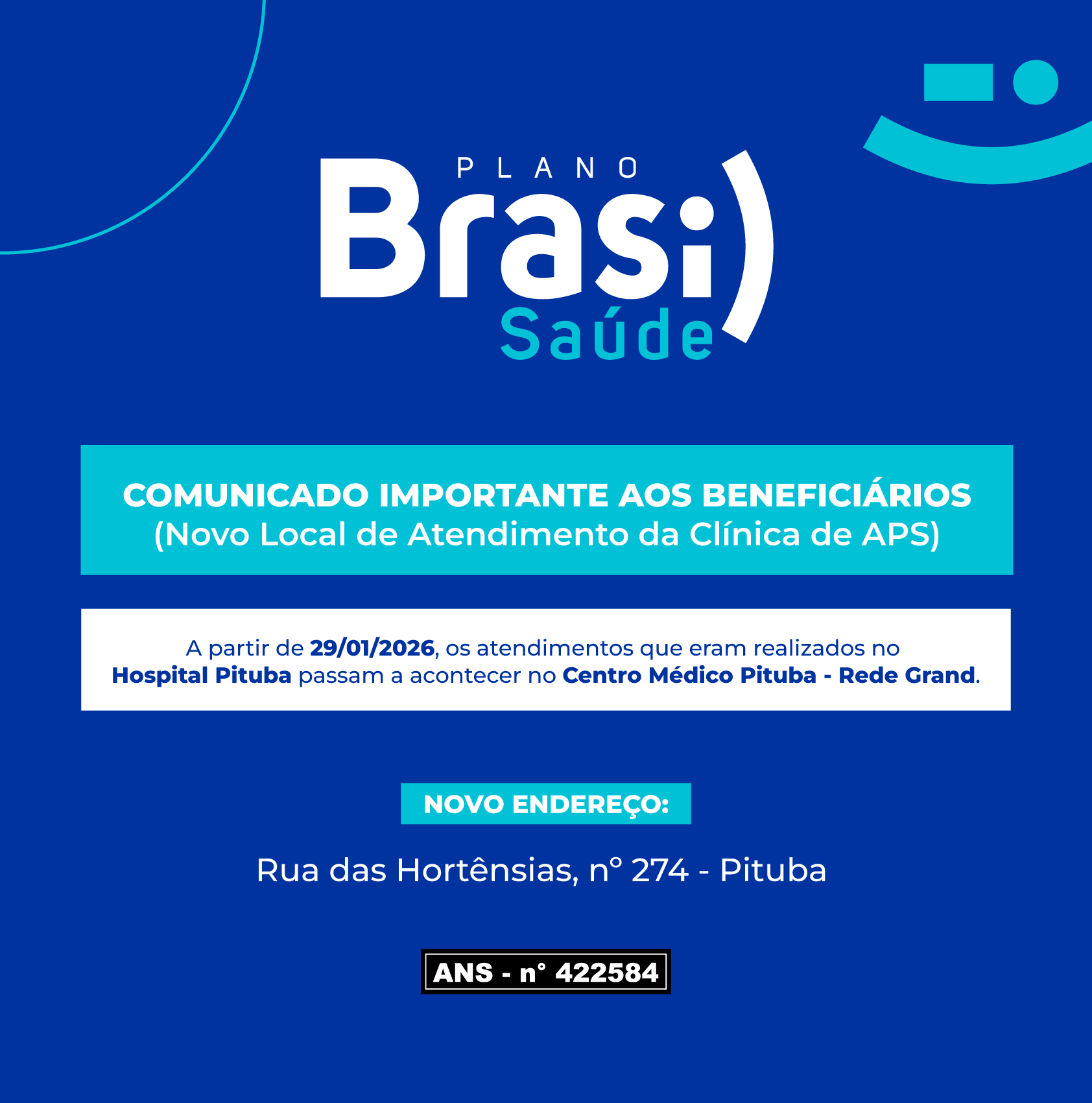 A partir de 29 de janeiro de 2026, os atendimentos da APS que eram realizados no Hospital Pituba passam a acontecer no Centro Médico Pituba – Rede Grand, localizado na Rua das Hortênsias, nº 274 – Pituba, em frente ao CMS.